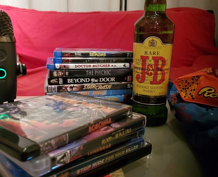 On November 22nd, we switched up how we do our podcasts. Instead of gathering at Kim’s to talk whatever, we went to Tony’s Cult Cinema Cove- aka his house, filled to the brim with every slightly odd or more movie to ever exist. We drank Tony’s Giallo drink, based around the favorite drink of the sleazy lead men of these movies (and MacCready in the THE THING) J&B! Filled with alcohol and massive amounts of Italian cuisine, we gave commentary to two films: THE FIFTH CORD and STRIP NUDE FOR YOUR KILLER.